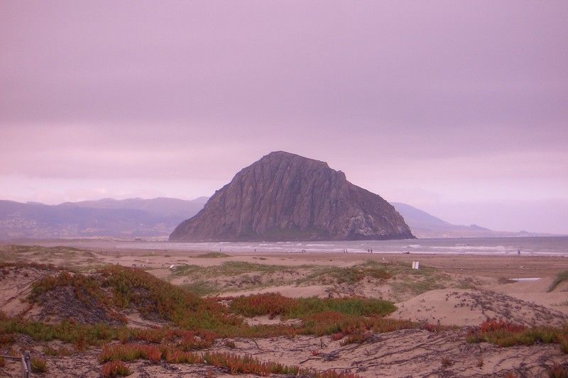 Morrow Rock am Highway No. 1 im typischen Pazifik-Küstennebel