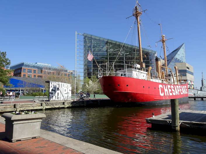 Baltimore - Inner Harbor with Lightship "Chesapeake" and National Aquarium